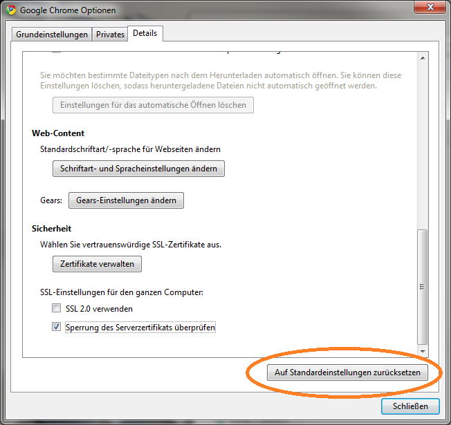 Click "Auf Standardeinstellungen zurücksetzen" again to confirm.